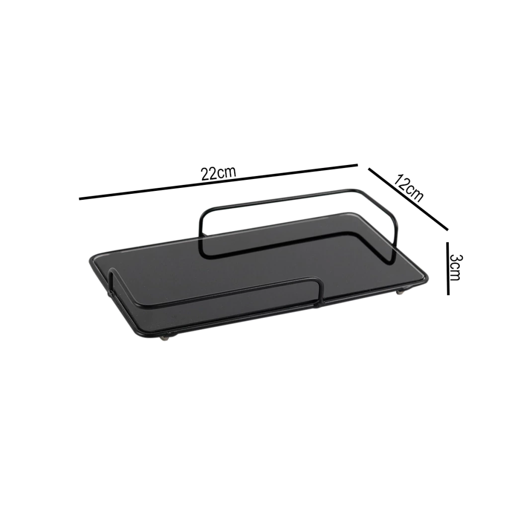 Bandeja Decorativa Style com Vidro Preto 12x22cm