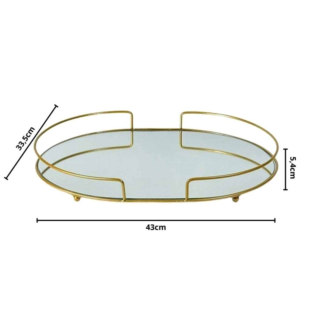 Bandeja Espelhada Decorativa 33,5x43cm para Decoração de Ambientes