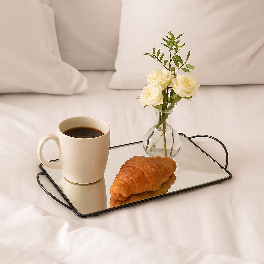 Crie composições únicas usando a bandeja como base para arranjos de flores, velas, porta-joias ou outros objetos decorativos. Você também pode usá-la para servir café da manhã na cama, petiscos ou bebidas para os seus convidados.
