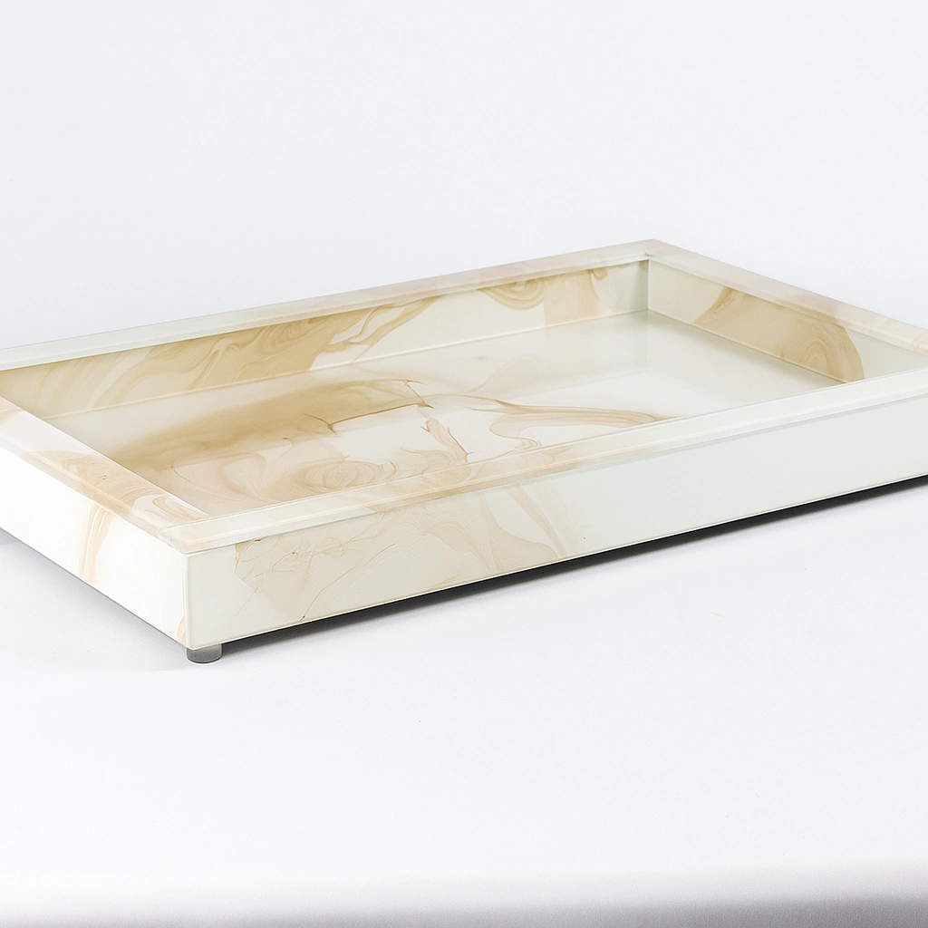Sofisticada e versátil, essa bandeja é produzida em MDF de alta qualidade, com tampo de vidro pintado na elegante cor bege. Seu design clean e neutro permite composições em diversos estilos de decoração, valorizando ambientes com charme e funcionalidade.