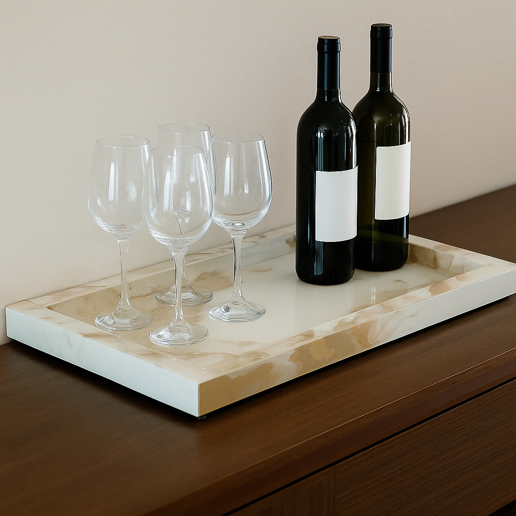 Ideal para uso em aparadores, buffets, bancadas ou mesas auxiliares, ela é perfeita para organizar e expor com bom gosto taças, garrafas, xícaras de café ou chá, além de itens decorativos. Seja em uma recepção elegante, em um cantinho do café ou na decoração de festas, essa peça agrega requinte e praticidade.