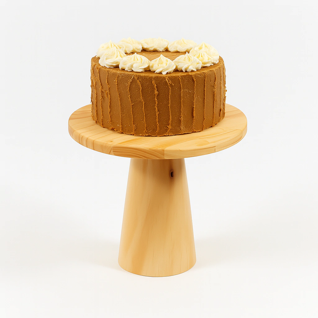 Apresente seus bolos com charme e elegância com nossa boleira rústica em madeira Pinus! Com 25cm de diâmetro e 22cm de altura, ela é perfeita para valorizar bolos decorados, naked cakes, tortas e doces em festas, eventos ou na decoração do seu buffet.