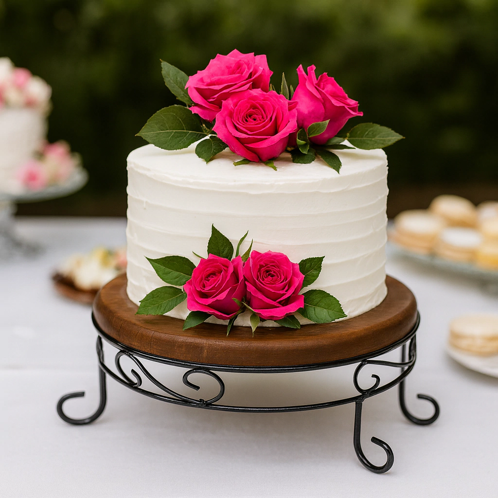 A Boleira Rústica Arabesco com Pé Metal é a escolha ideal para valorizar a apresentação de bolos, doces e outras delícias em buffets de festa. Com tampo em madeira escura e pés de metal com arabescos dourados, ela une rusticidade e elegância em um só item. Ideal para eventos como casamentos, aniversários e celebrações especiais, trazendo charme e sofisticação à composição da mesa.
