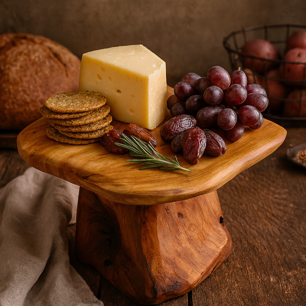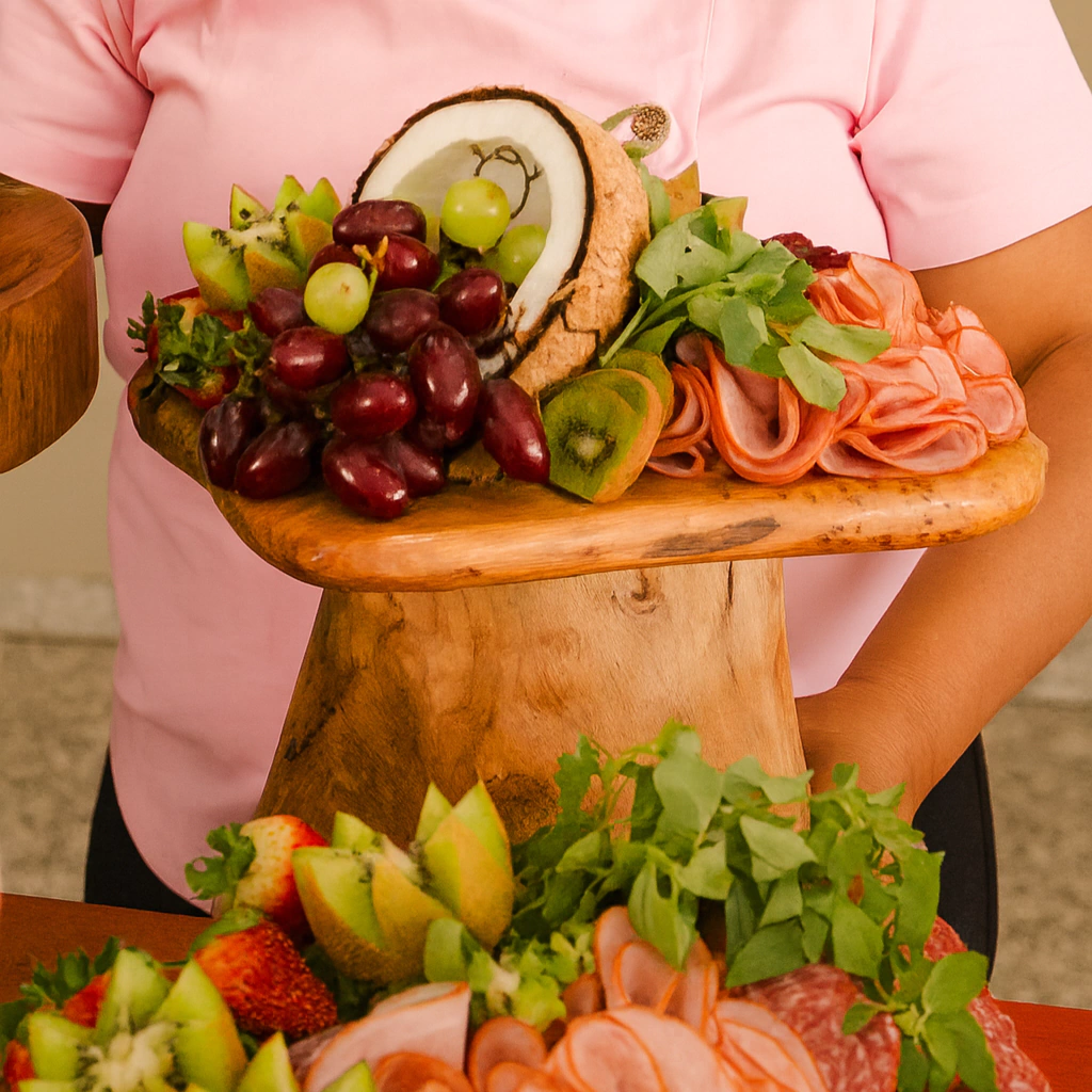Com design artesanal e acabamento natural, esta boleira traz a autenticidade da madeira em seu estado mais elegante. Cada peça é única, com veios, formas e texturas que destacam a beleza orgânica do tronco.
