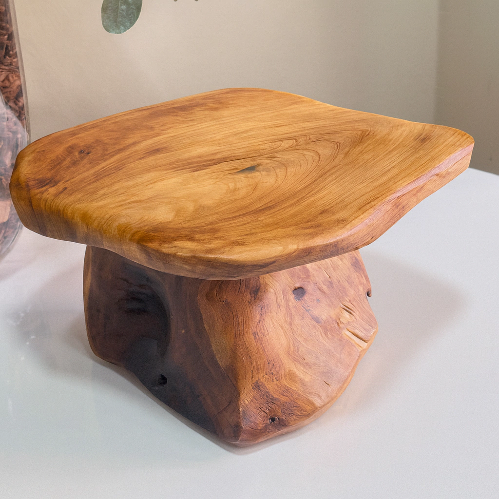 Com design artesanal e acabamento natural, esta boleira traz a autenticidade da madeira em seu estado mais elegante. Cada peça é única, com veios, formas e texturas que destacam a beleza orgânica do tronco.