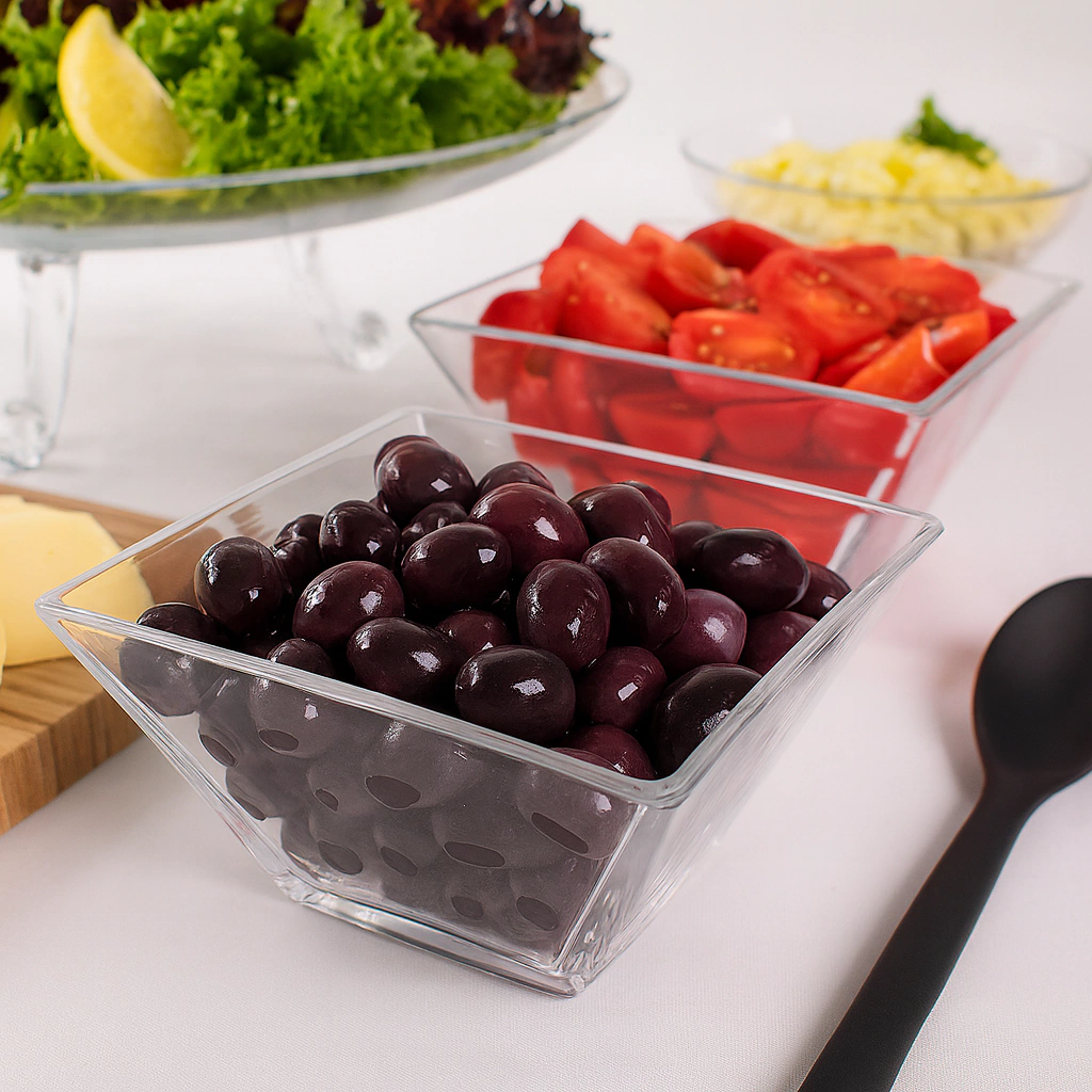Moderno e funcional, o bowl quadrado de vidro é perfeito para compor mesas de buffet, coffee breaks, eventos e recepções sofisticadas. Seu formato geométrico traz um toque contemporâneo, enquanto a transparência do vidro valoriza as cores e texturas dos alimentos, garantindo uma apresentação impecável.