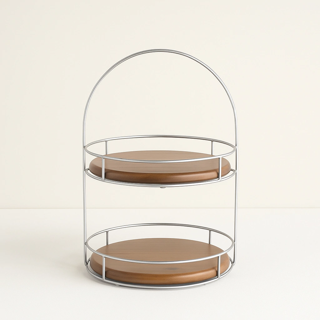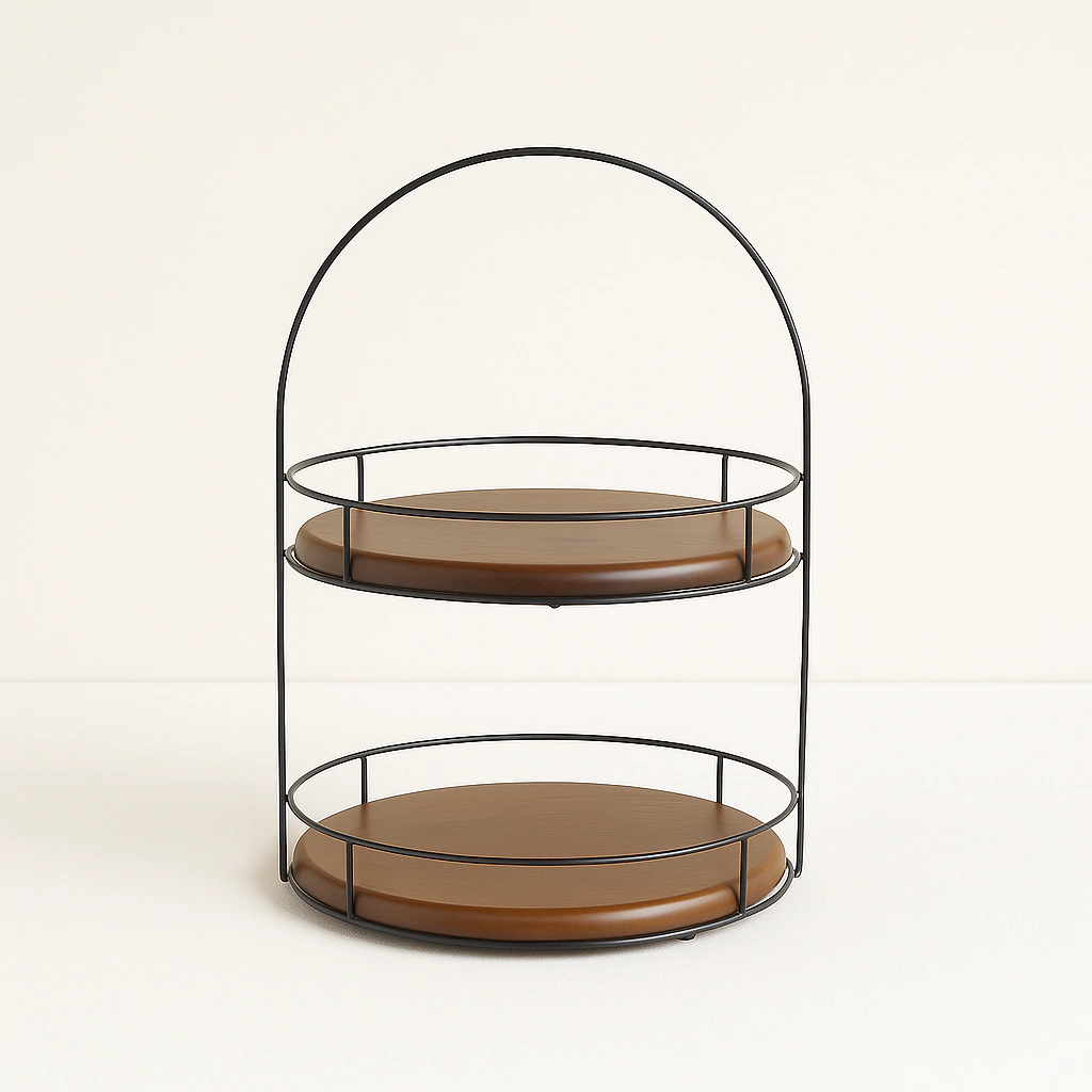 Com dois andares espaçosos, proporciona praticidade na organização e exposição de frutas, pães, doces, petiscos, ou ainda itens decorativos. Sua estrutura reforçada garante durabilidade, enquanto o estilo rústico combina perfeitamente com diferentes composições — do clássico ao contemporâneo.