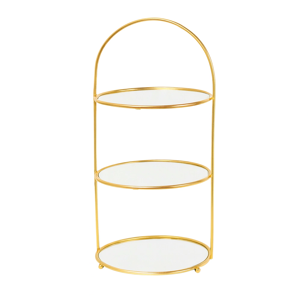 Este expositor em formato de torre é a peça ideal para valorizar doces, mini porções ou itens decorativos em buffets, eventos e vitrines comerciais. Com estrutura metálica resistente e acabamento em pintura eletrostática, ele traz três prateleiras redondas com base espelhada, conferindo sofisticação e realce aos itens expostos. Seu design moderno com alça superior facilita o transporte e adiciona um toque contemporâneo ao ambiente.