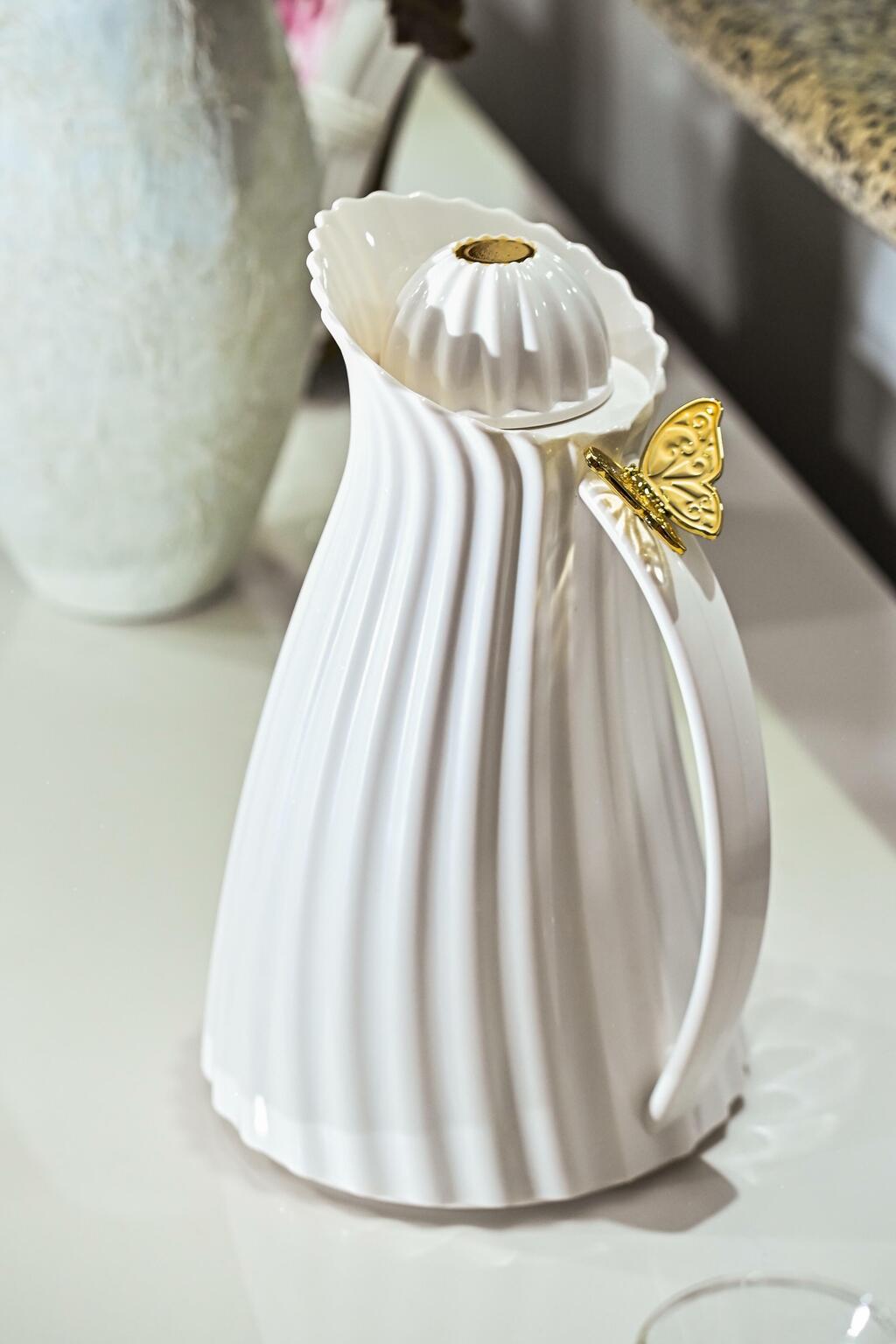 Leve charme e funcionalidade para sua mesa com a Garrafa Térmica Borboleta de 1 litro. Com design delicado e acabamento em alto brilho, ela se destaca pela beleza e eficiência. Ideal para servir café, chá ou outras bebidas quentes ou frias, mantendo a temperatura por muito mais tempo.