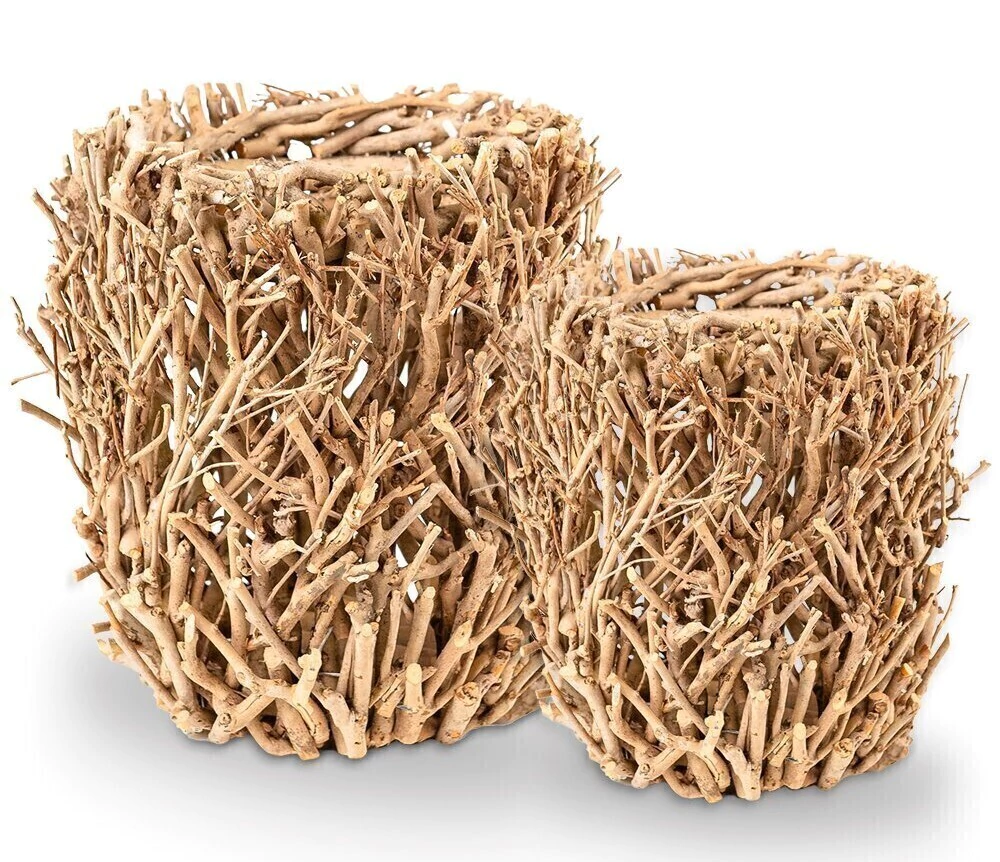 O Vaso de Gravetos é uma peça imponente e natural que leva rusticidade e sofisticação para qualquer ambiente. Produzido a partir de gravetos entrelaçados, seu design artesanal valoriza texturas orgânicas e cria um visual exclusivo, ideal para composições em eventos, buffets e decorações de interiores.
