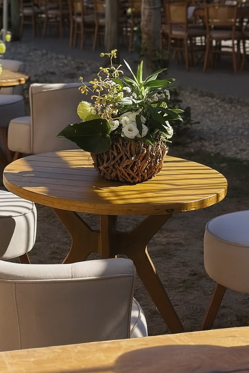 Versátil e elegante, pode ser utilizada para acomodar arranjos florais, frutas, pães, doces ou até mesmo como centro de mesa em eventos. Seu design artesanal valoriza o estilo rústico-chique, criando um ponto de destaque que combina tanto com decorações modernas quanto tradicionais.