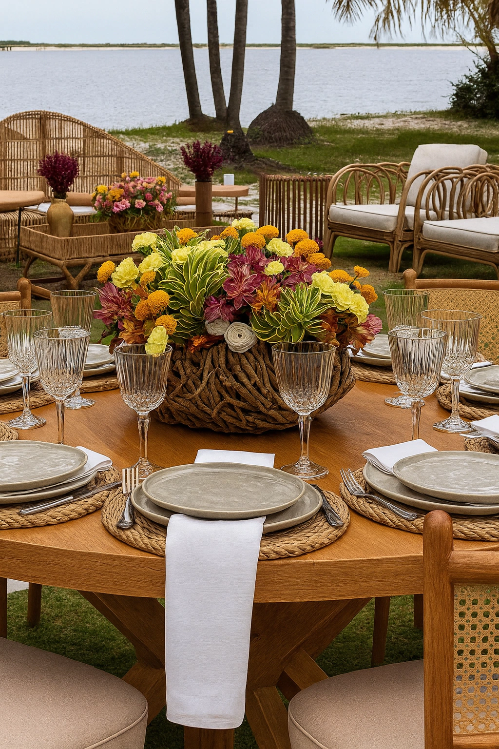 A Bacia de Gravetos Decorativos é uma peça diferenciada que une rusticidade e sofisticação. Produzida com acabamento natural em gravetos entrelaçados, ela traz um charme orgânico para composições de buffet, mesas gastronômicas ou decorações de ambientes.