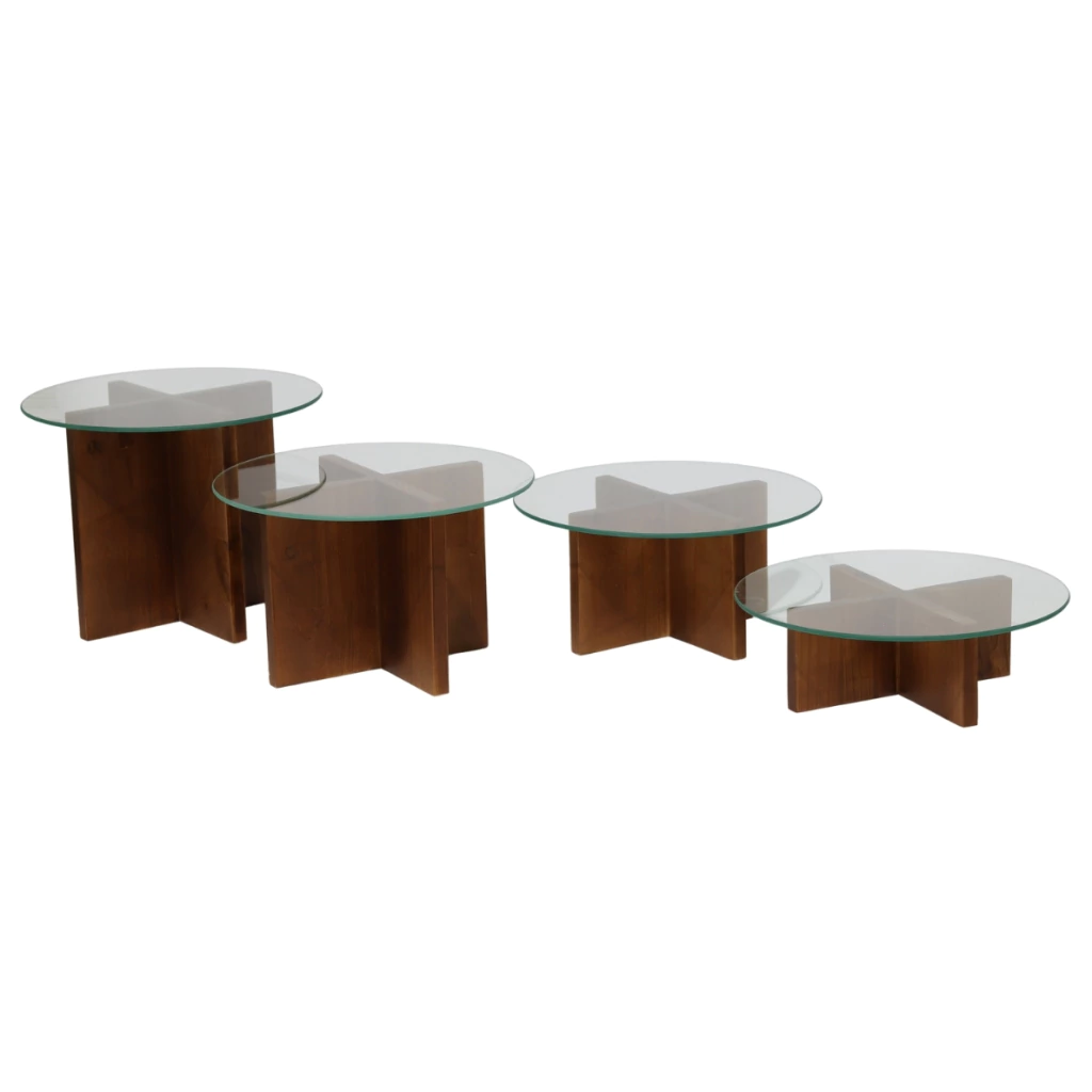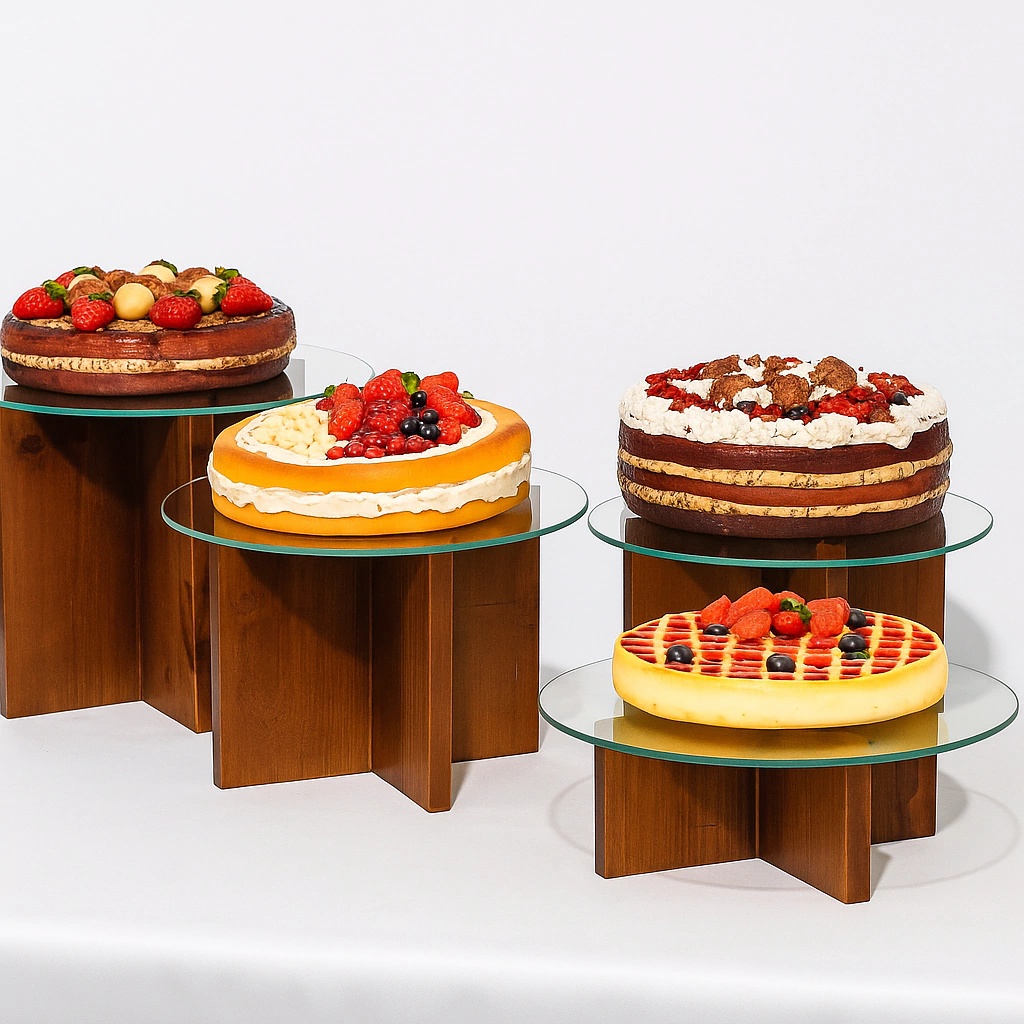 Este elegante kit é composto por 4 boleiras em diferentes alturas, perfeitas para compor mesas de doces, bolos e finger foods com sofisticação. As bases são feitas em madeira com acabamento rústico e estrutura em cruz, proporcionando estabilidade e charme ao conjunto.