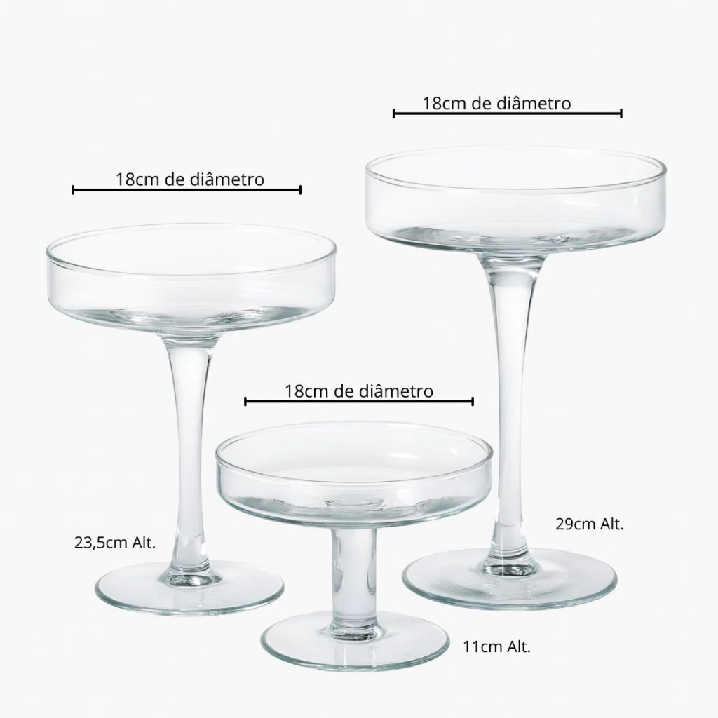 Transforme a apresentação dos seus doces com este sofisticado suporte de vidro alto. Com design refinado e base alongada tipo taça, ele é perfeito para destacar bolos, tortas, cheesecakes e outras delícias em mesas de festas, buffets e eventos. A transparência do vidro valoriza as cores e texturas dos alimentos, garantindo um visual leve e elegante. Ideal para quem busca charme e funcionalidade na hora de servir.