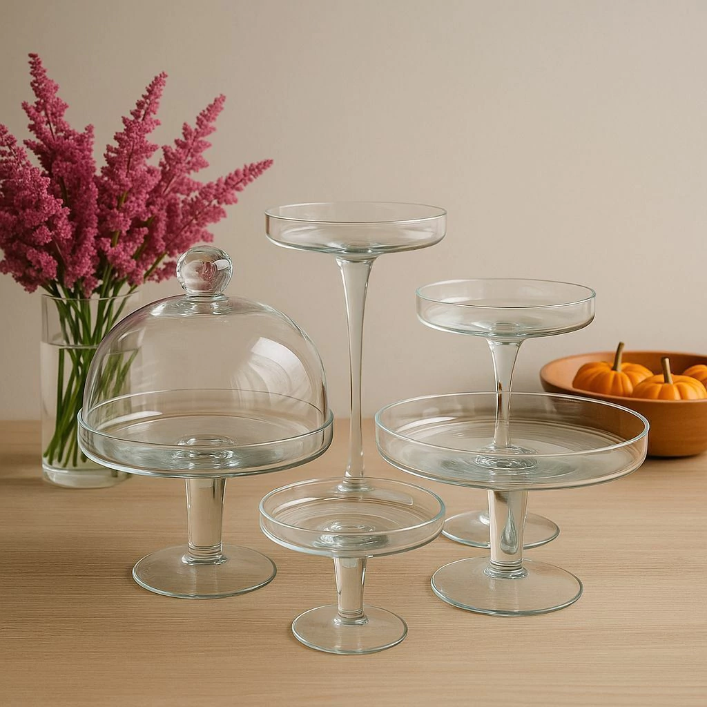 Suporte de Vidro Alto para Bolos e Tortas – Elegância e Sofisticação na Apresentação