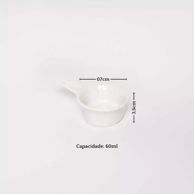 A Panelinha Mini de Porcelana 60 ml é a escolha ideal para servir porções pequenas com charme, delicadeza e estilo gourmet. Produzida em porcelana branca de alta qualidade, possui acabamento liso e brilhante, design elegante e uma pequena alça que adiciona um toque sofisticado à apresentação.