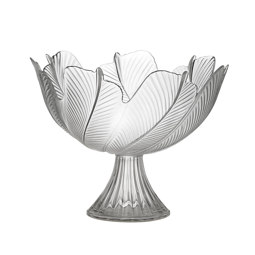 Elegante e versátil, esta saladeira em vidro com pé é perfeita para valorizar qualquer mesa de buffet, restaurante ou evento. Seu design em formato de pétalas traz sofisticação e leveza, enquanto o pé elevado confere destaque à apresentação.