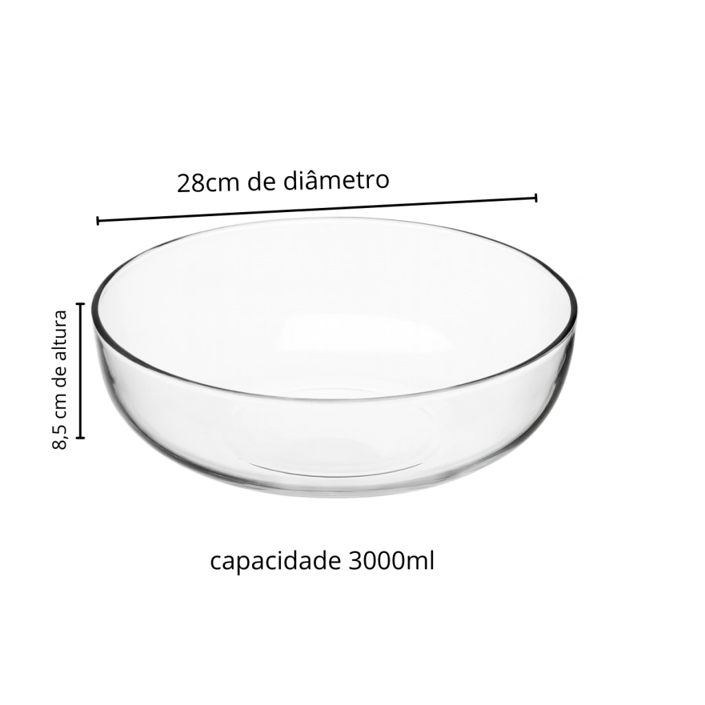 Saladeira de Vidro Transparente com capacidade de 3.000 ML