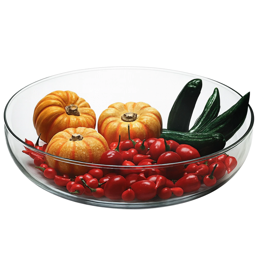 Fabricada em vidro de alta qualidade, proporciona resistência e sofisticação, além de permitir a visualização completa dos alimentos, valorizando a apresentação à mesa. Seu design amplo e arredondado garante praticidade e estilo em qualquer ocasião.