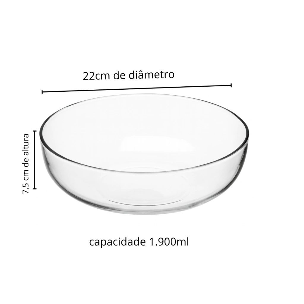 Saladeira de Vidro Transparente com capacidade de 1,900 litros.