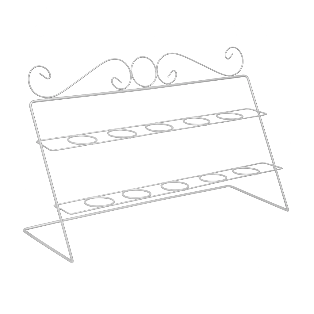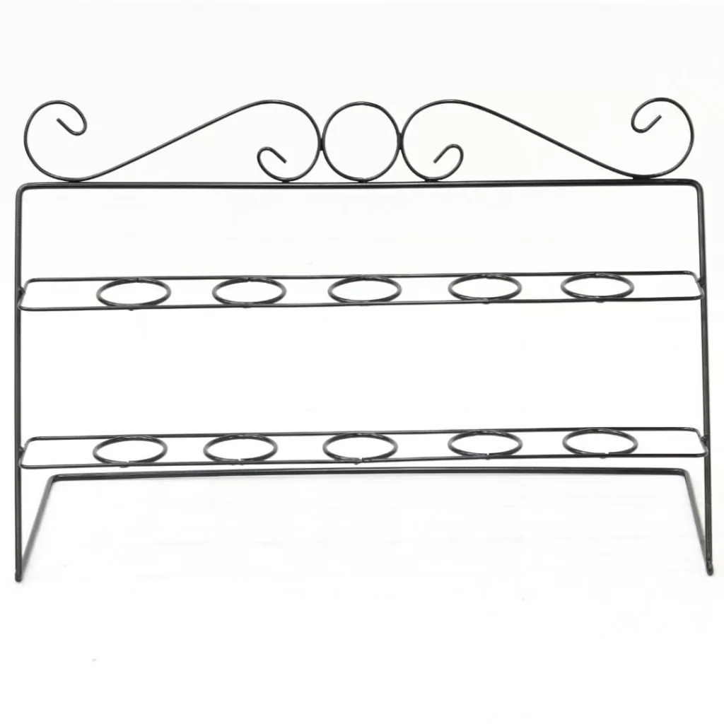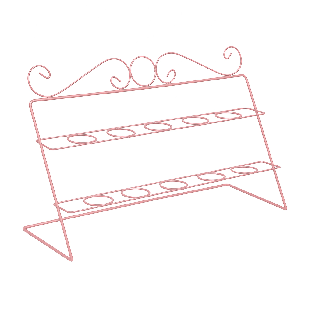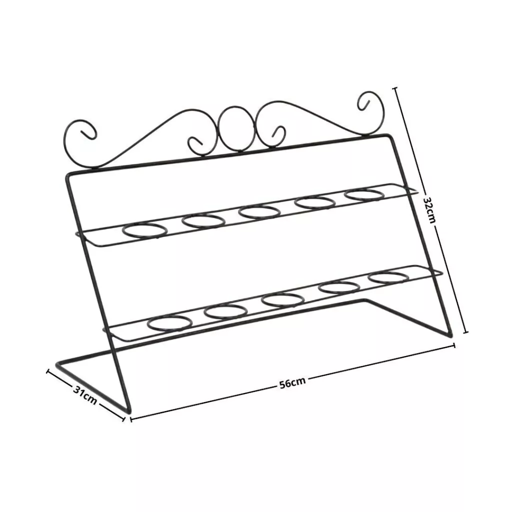 Realce a apresentação do seu buffet com este suporte elegante em metal preto brilhante, pensado para organizar e valorizar finger foods em copinhos de vidro. O design com duas prateleiras inclinadas e arabescos decorativos confere um toque sofisticado, enquanto otimiza o espaço da mesa e facilita o serviço. Perfeito para coquetéis, recepções, cafeterias, hotéis e eventos corporativos, o expositor garante visibilidade atraente dos petiscos, tornando‐os ainda mais irresistíveis aos convidados.