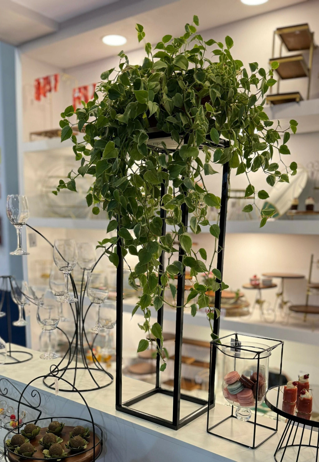 Com um visual moderno e elegante, esta estrutura metálica é perfeita para destacar peças decorativas, vasos, arranjos florais ou criar composições com diferentes alturas em eventos e interiores. Fabricada em metal com pintura eletrostática, oferece acabamento uniforme, durabilidade e um toque contemporâneo ao ambiente.
