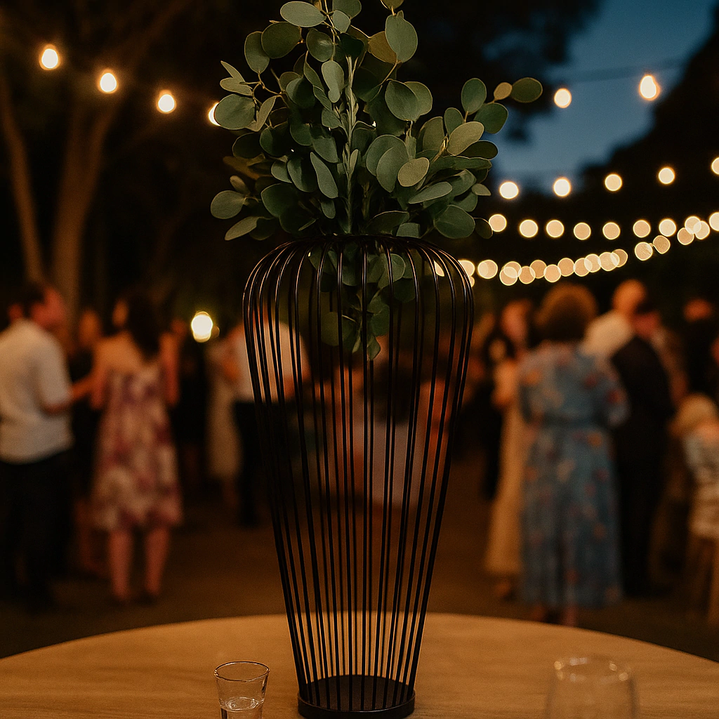 Seu design moderno valoriza arranjos florais e composições sofisticadas em eventos ou ambientes internos.
