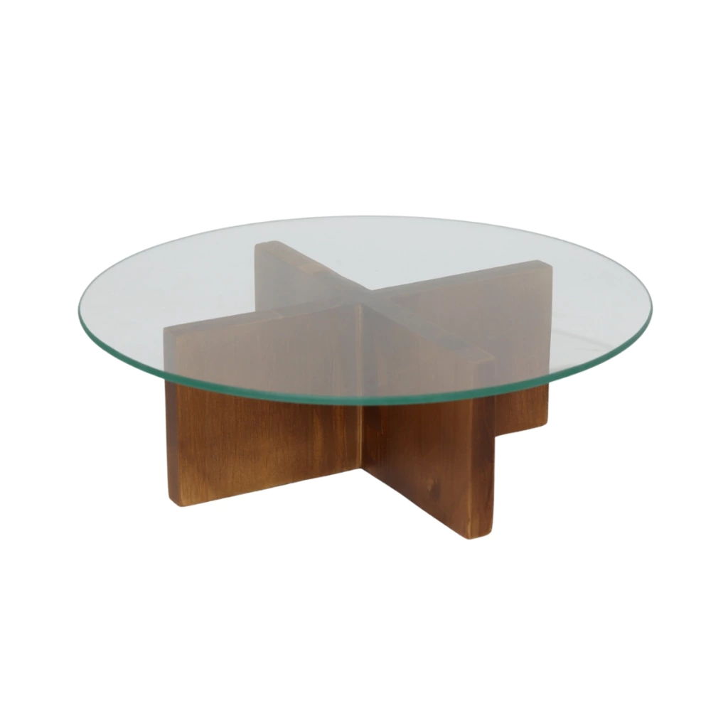 Este suporte elegante combina a sofisticação do tampo de vidro com a rusticidade da base em madeira no formato cruzado. É perfeito para valorizar a apresentação de doces finos, finger foods, mini porções e itens decorativos em buffets, mesas de festas ou eventos corporativos.
