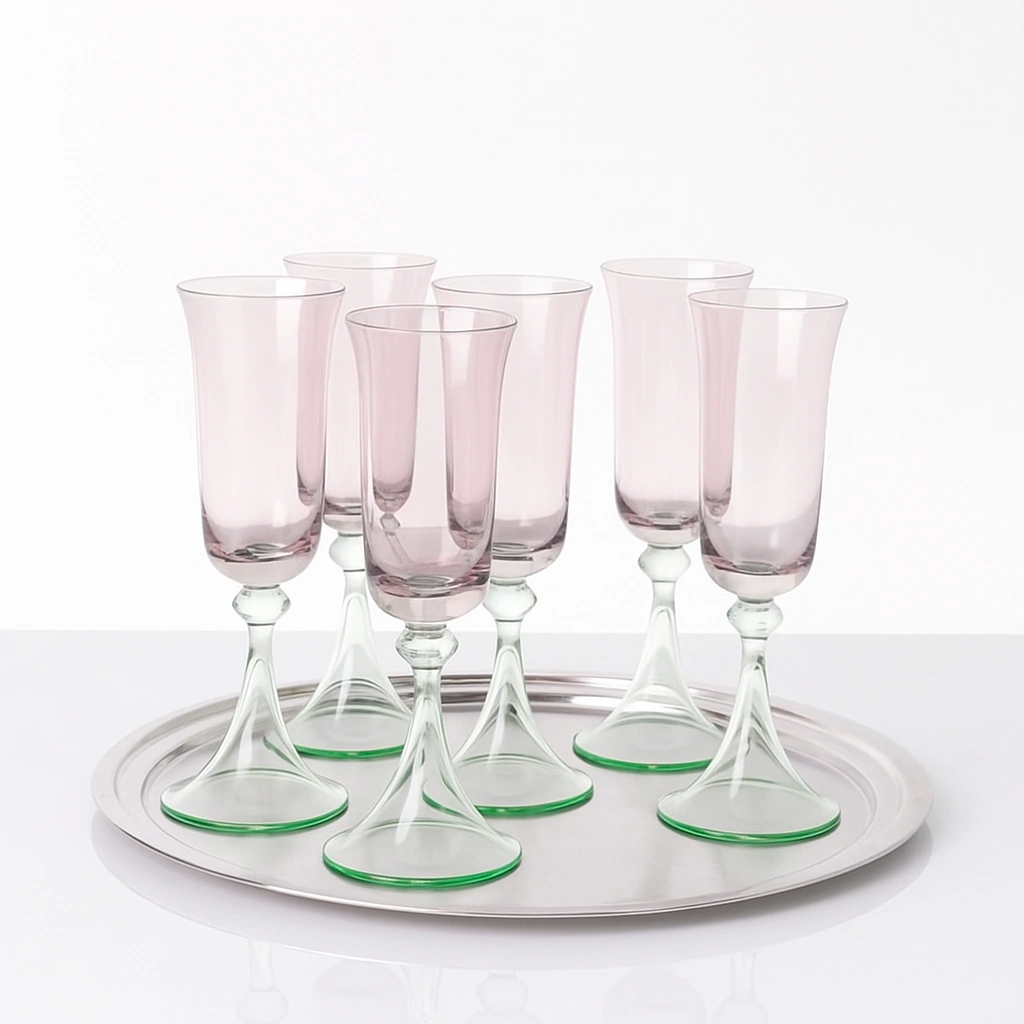 Dê um toque de elegância e cor à sua mesa com este lindo jogo de taças de vidro nas cores rosa e verde, perfeitas para servir bebidas com estilo em qualquer ocasião.