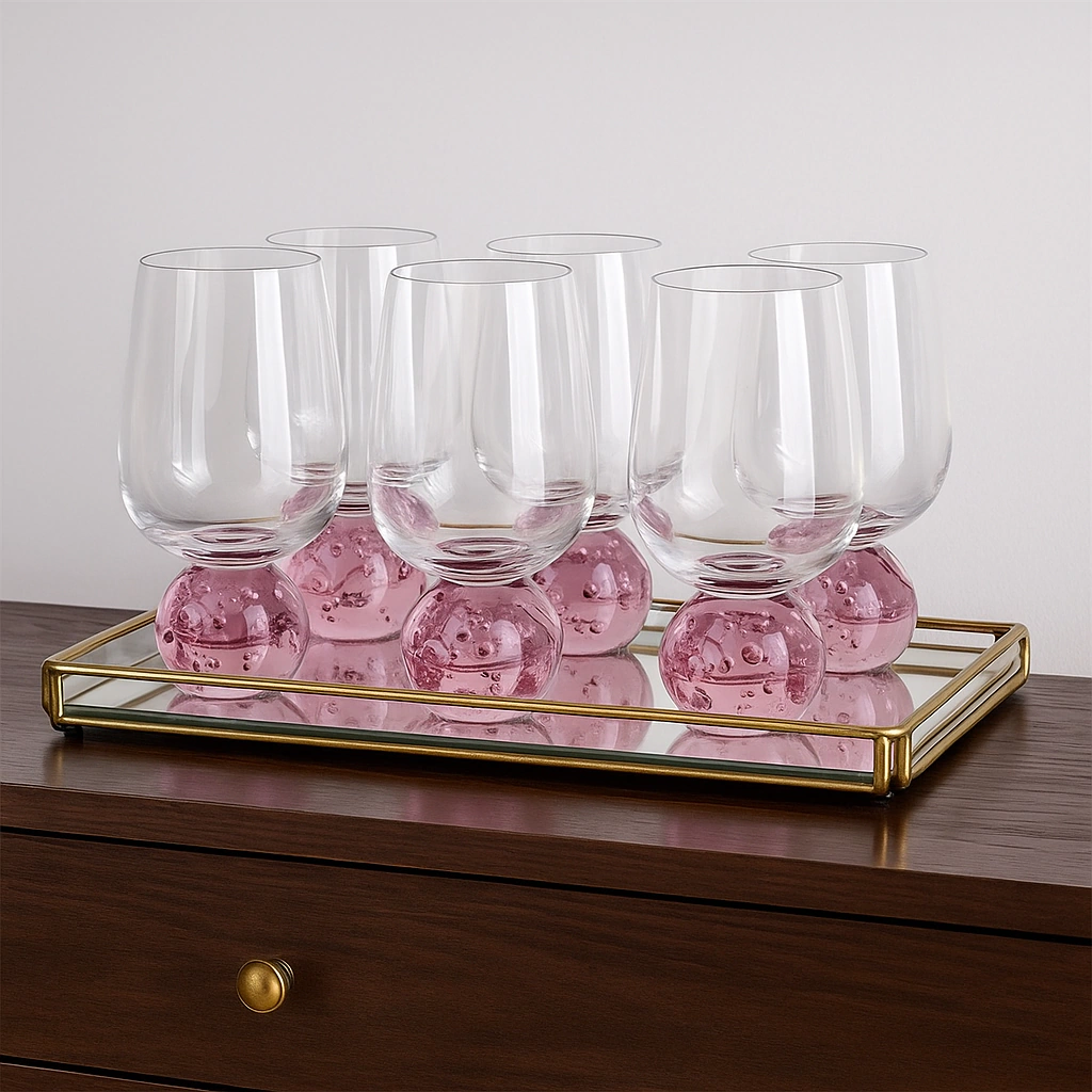 Encante seus convidados com este jogo de taças transparentes com base pink, que une elegância e modernidade na medida certa!