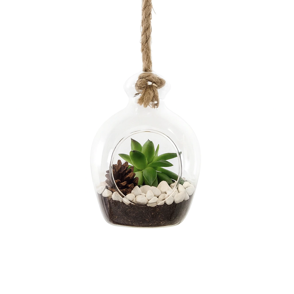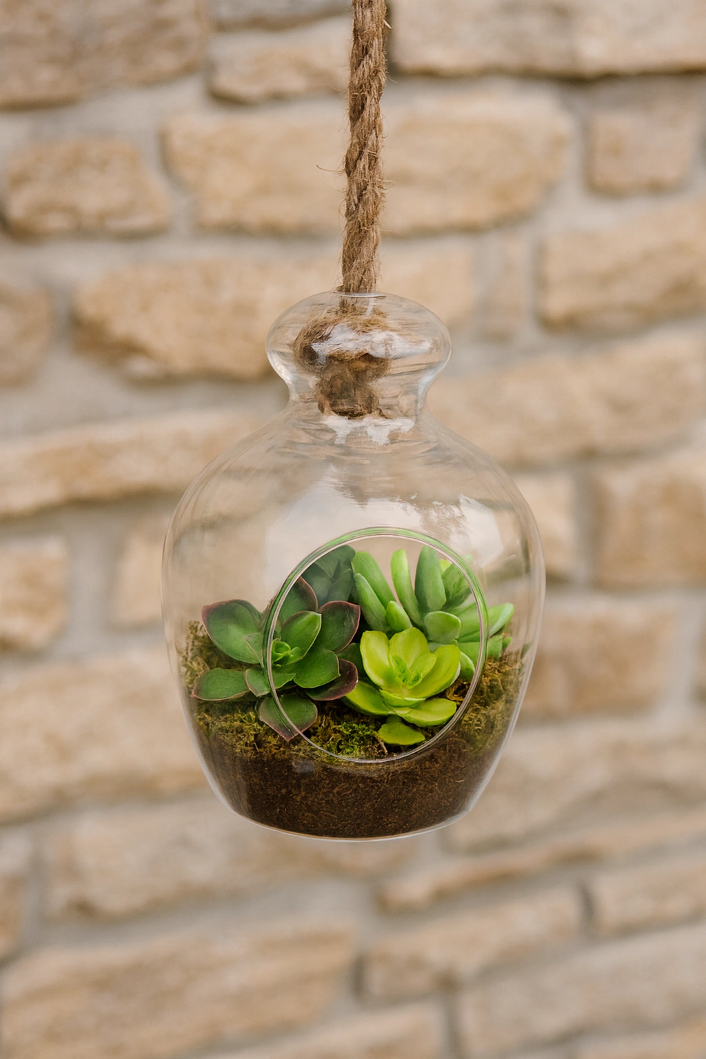 O Terrário Sisal Suspenso é uma peça charmosa e versátil que combina o toque natural do sisal com a leveza do vidro. Ideal para quem busca trazer vida e aconchego a diferentes ambientes, ele pode ser usado com plantas naturais, suculentas, flores secas ou até mesmo velas e elementos decorativos criativos.