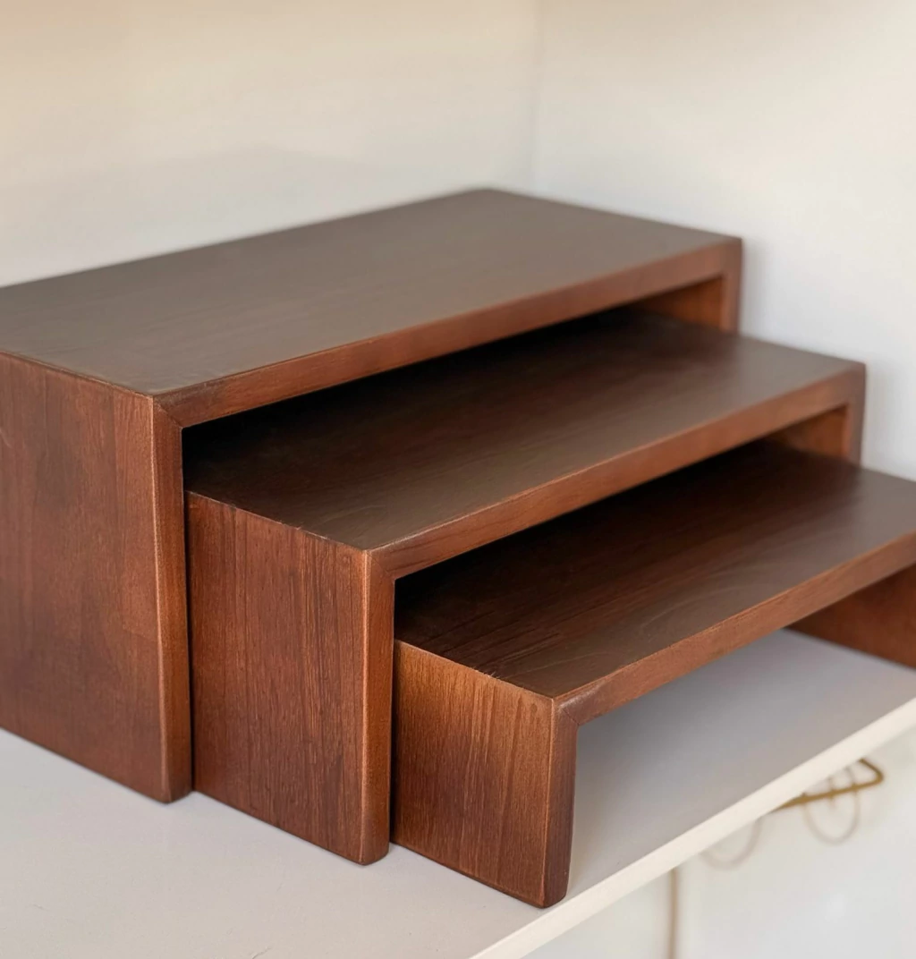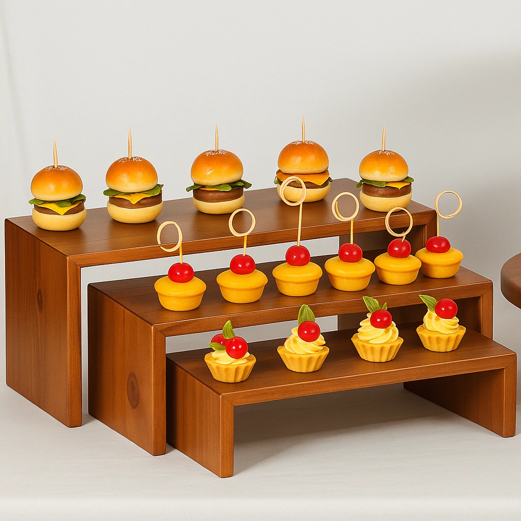 Apresente seus pratos com charme e sofisticação com o Trio de Suportes para Buffet. Feitos em madeira resistente, esses caixotes combinam funcionalidade e estilo, permitindo diversas composições para realçar a experiência gastronômica.
