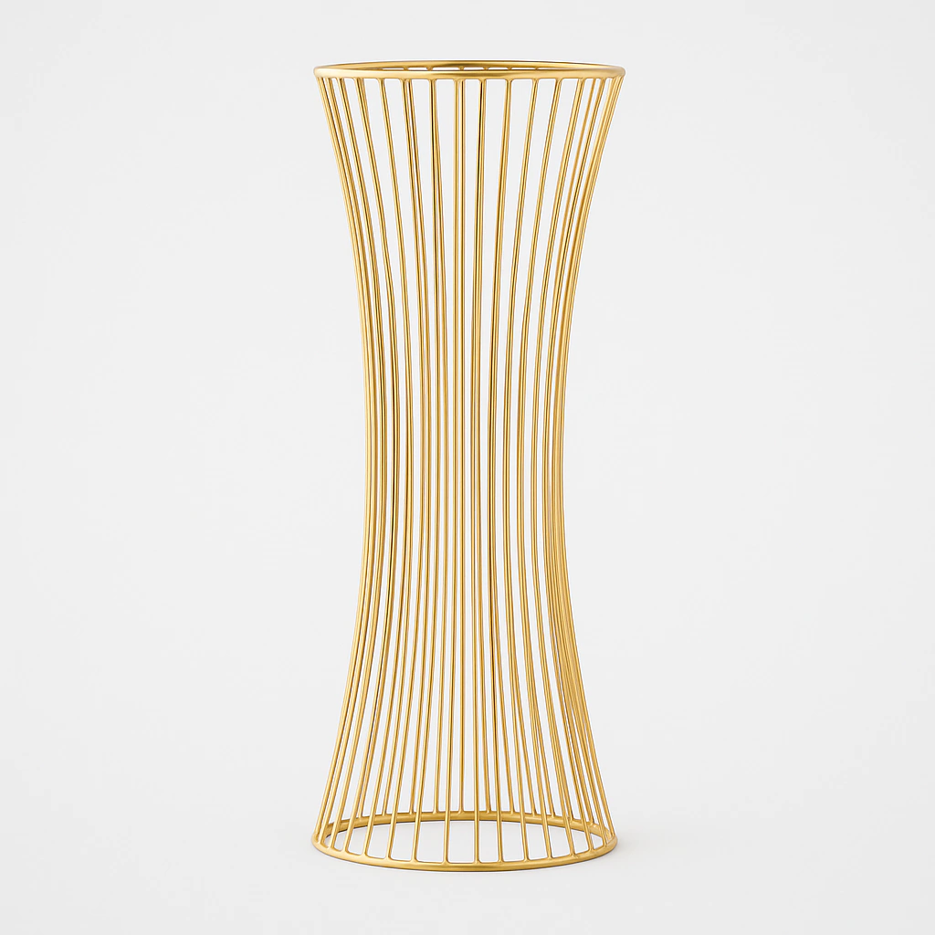 Destaque seus arranjos florais com o Vaso Aramado Decorativo, uma peça sofisticada que combina leveza e design contemporâneo. Feito em metal resistente, seu formato vazado proporciona um toque moderno e versátil para composições florais em eventos, buffets e decoração de ambientes.